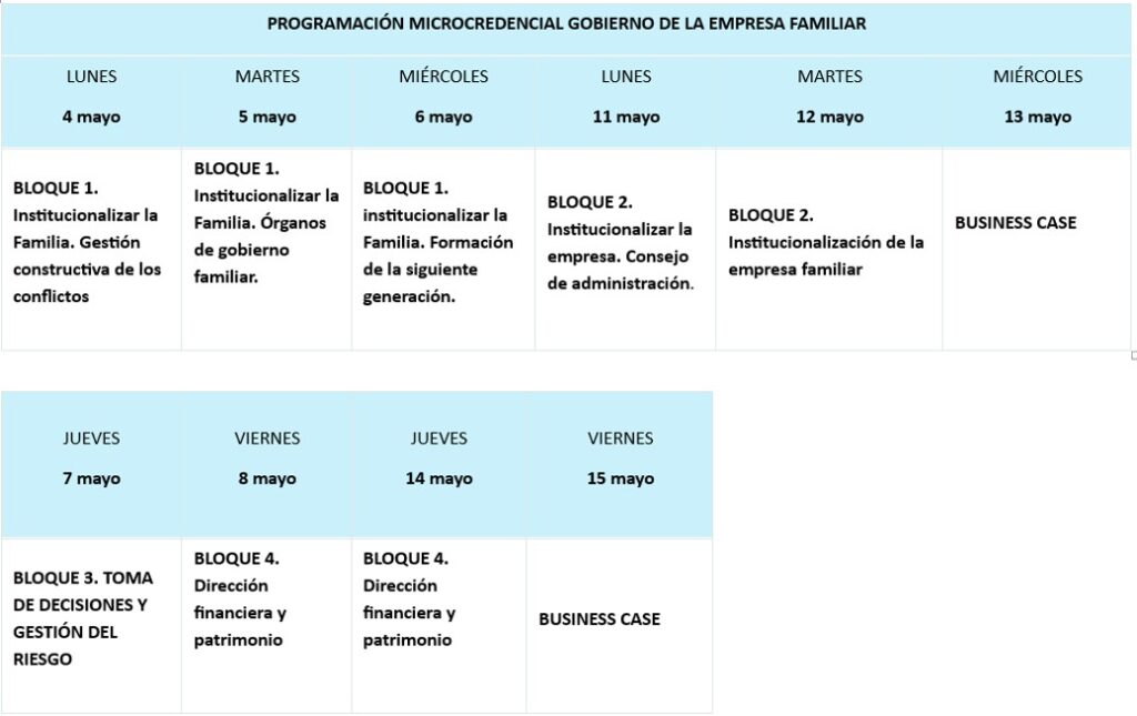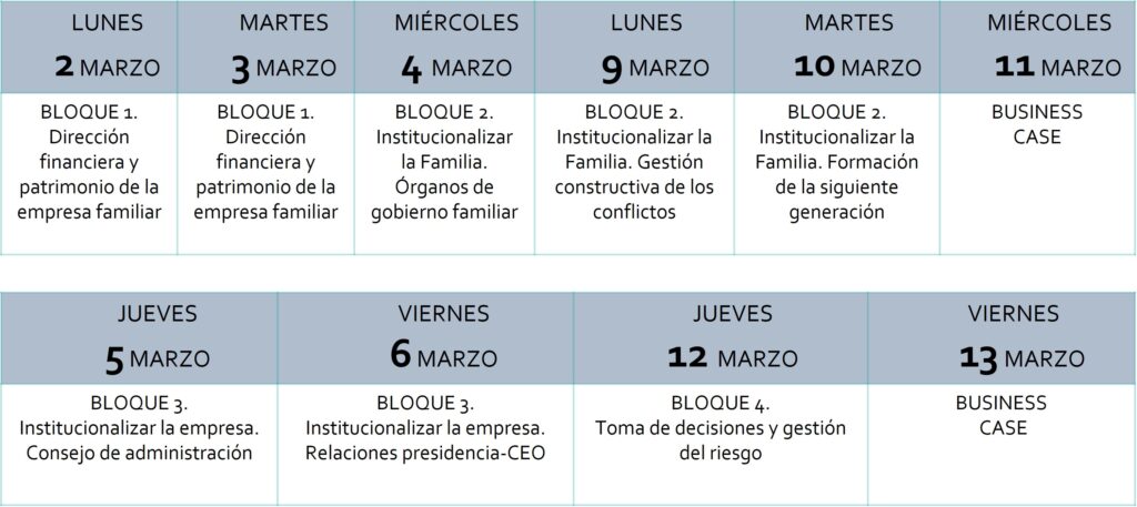 - Promover la excelencia formativa de los miembros de familias empresarias y sus cuadros directivos, facultándoles para liderar procesos de profesionalización y asegurar la continuidad organizacional. Igualmente, incrementar la eficiencia en la toma de decisiones y fortalecer el legado familiar, dotando a las personas participantes de las competencias necesarias para: